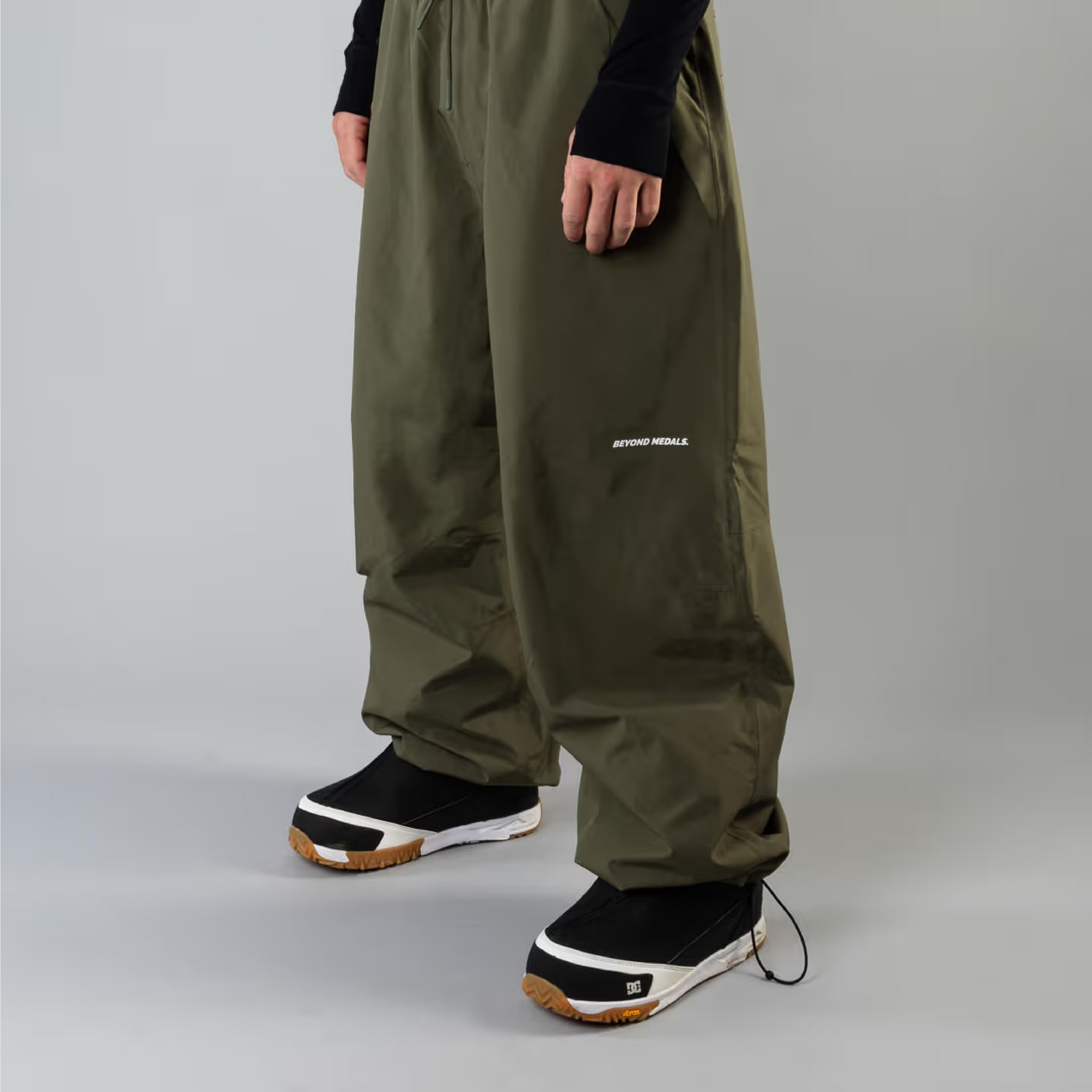 BIG baggy snowboard park pants from Beyond Medals. A versatile 2-layer pant with 15k waterproofing and drawstrings. Comfortable and good looking pant for everyday boarding.